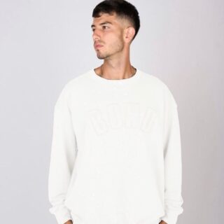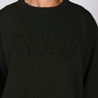 Seleccionar opcionesRustico pesado, con cuello, puños y cintura en rbb. Efecto soplete en prenda completa, acentuando cuello, puños y cintura. Tiene estampa tipografica BOND en altorelieve centrada en delantero.