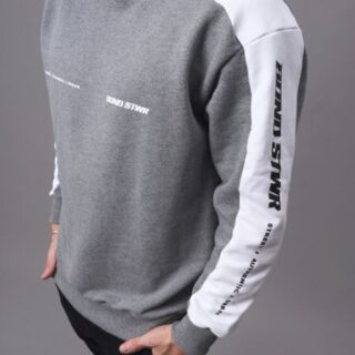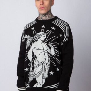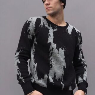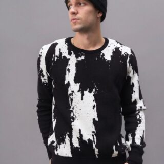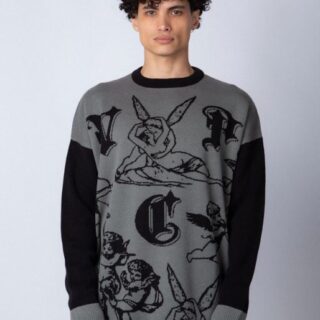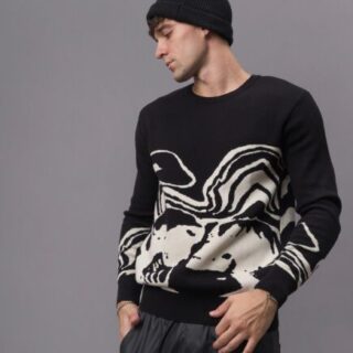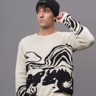 Sweater cuello redondo- tela hilo. Tejido grueso. Corte oversize. Con motivo.