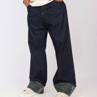 Seleccionar opcionesdenim negro rigido, con costuras negras, calce baggy y botamanga en tobillo con botones para regular. Tiene un lavado artesanal matizado en tonos tierra con luces y bigotes en delantero. Avios negro y badana monograma bond en color negro.