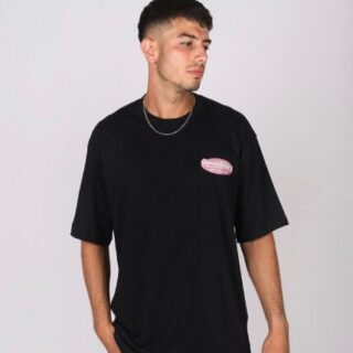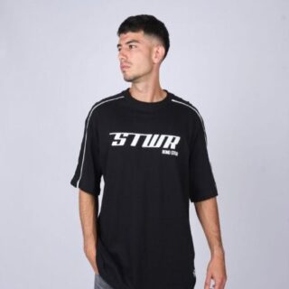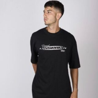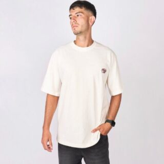 Seleccionar opcionesCalce oversize, con recorte en mangas terminado de tela base a contratono. Tiene estampa tipografica bond en delantero y etiqueta institucional en el lateral izquierdo a contratono.