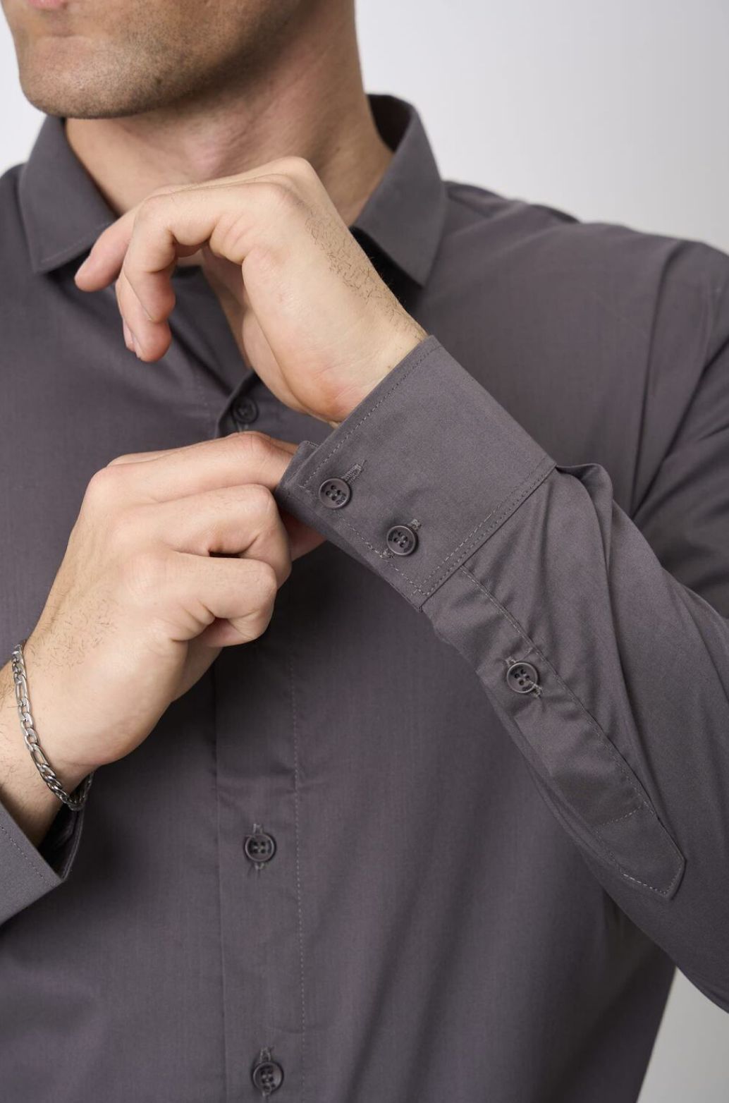 Camisa lisa slim fit mangas largas.