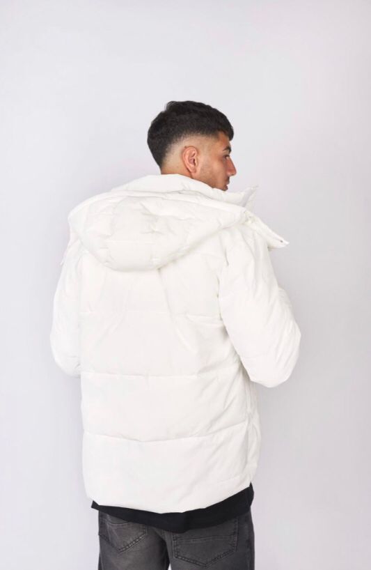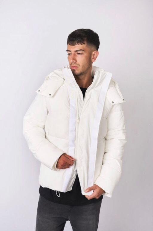 Inflable. Cuenta con cuello alto, puños de ribb de alta calidad, cierre frontal con doble tiracierre grabado BOND STWR, complementado con abrojo en la totalidad de la solapa. Bolsillos ojal con cierre. Capucha desmontable con broches grabados BOND STWR, permitiendo retirarla facilmente o abrocharla, manteniendo el estilo y la funcionalidad de la prenda. Cintura con ajuste para mayor comodidad. Detalle de estampa institucional en abrojo superior y lateral trasero derecho.