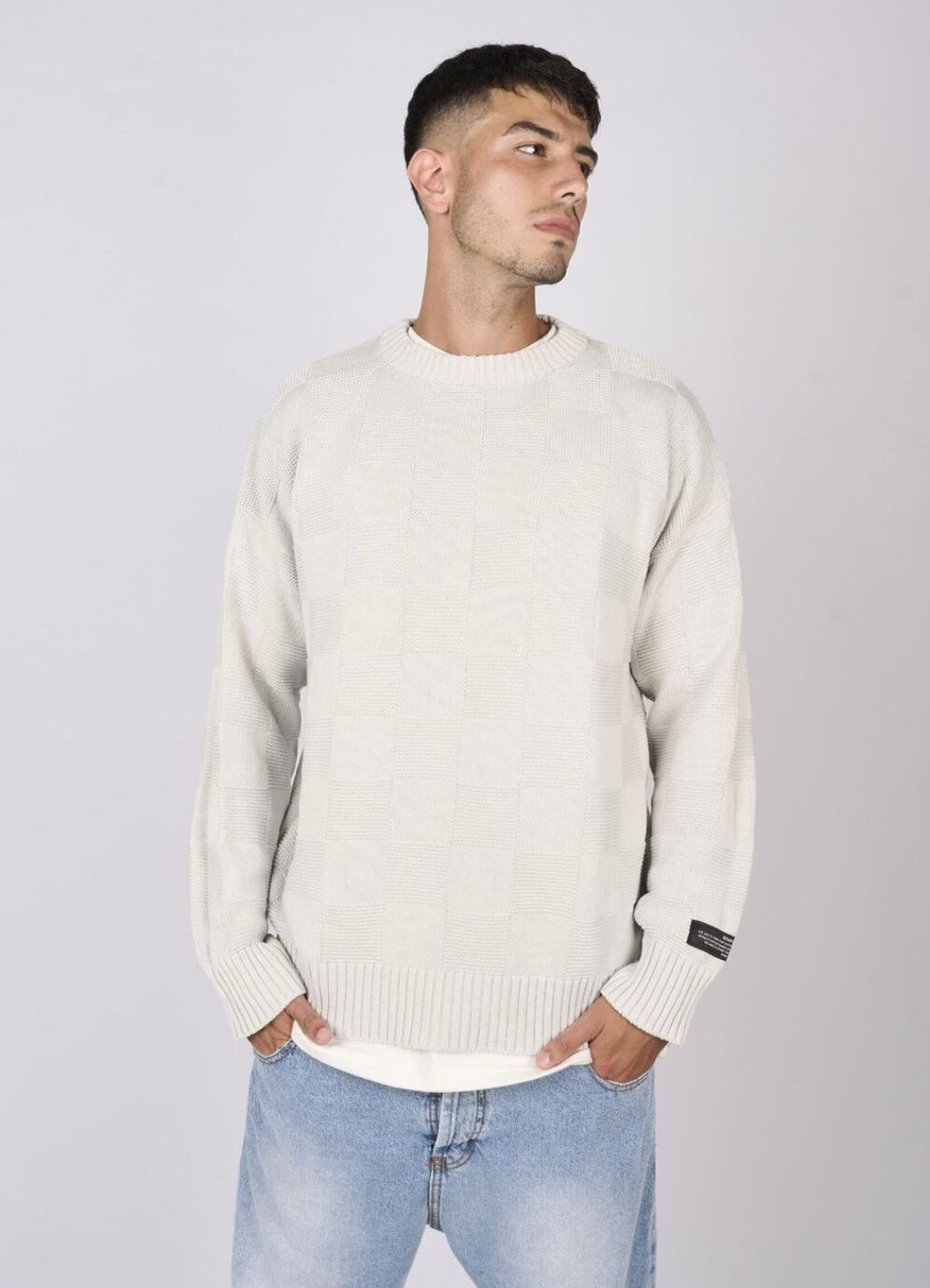 sweater square tejido gris perla