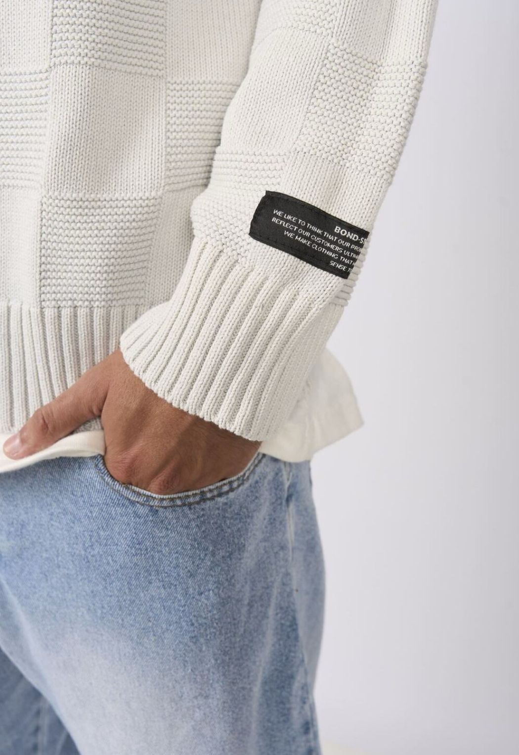 Hilado premium , tejido con punto con diseño en forma de cuadros .